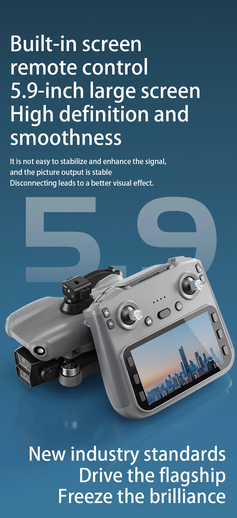 Built-in large color screen for real-time FPV viewing