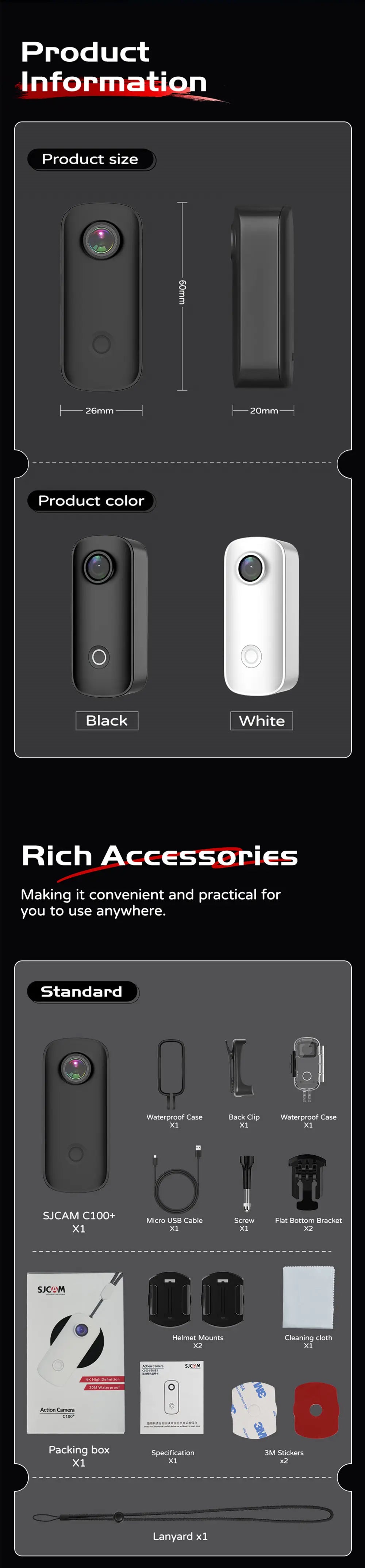 Inform when this item available SJCAM C100 Plus 4K Action Camera Waterproof with WiFi & EIS