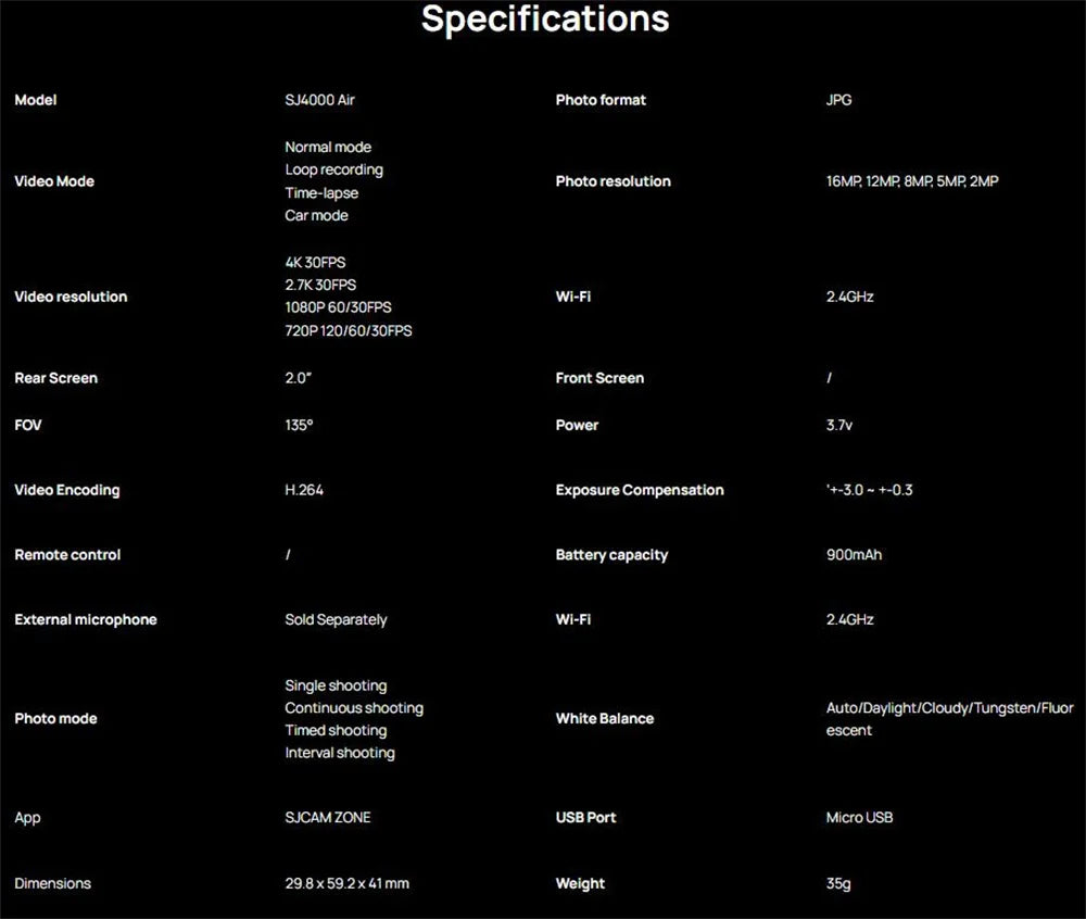 Inform when this item available SJCAM SJ4000 Air 4K Action Camera Waterproof with WiFi