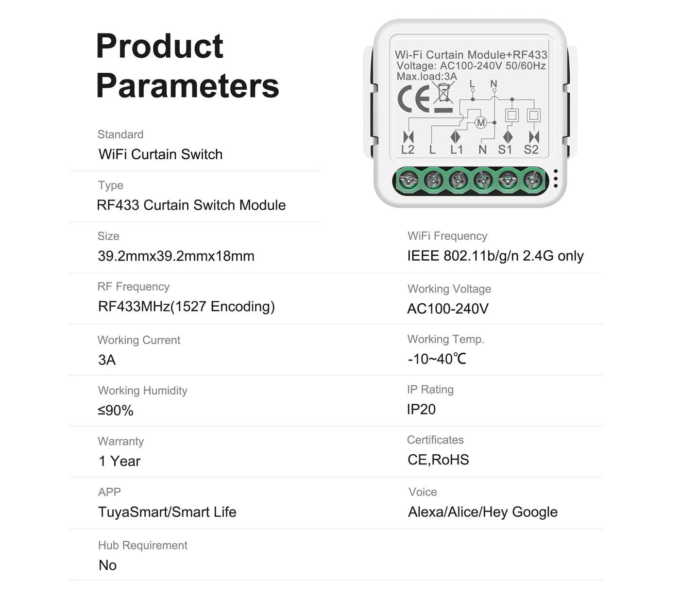 Inform when this item available GIRIER Tuya WiFi RF433 Curtain Switch Module for Roller Shutter